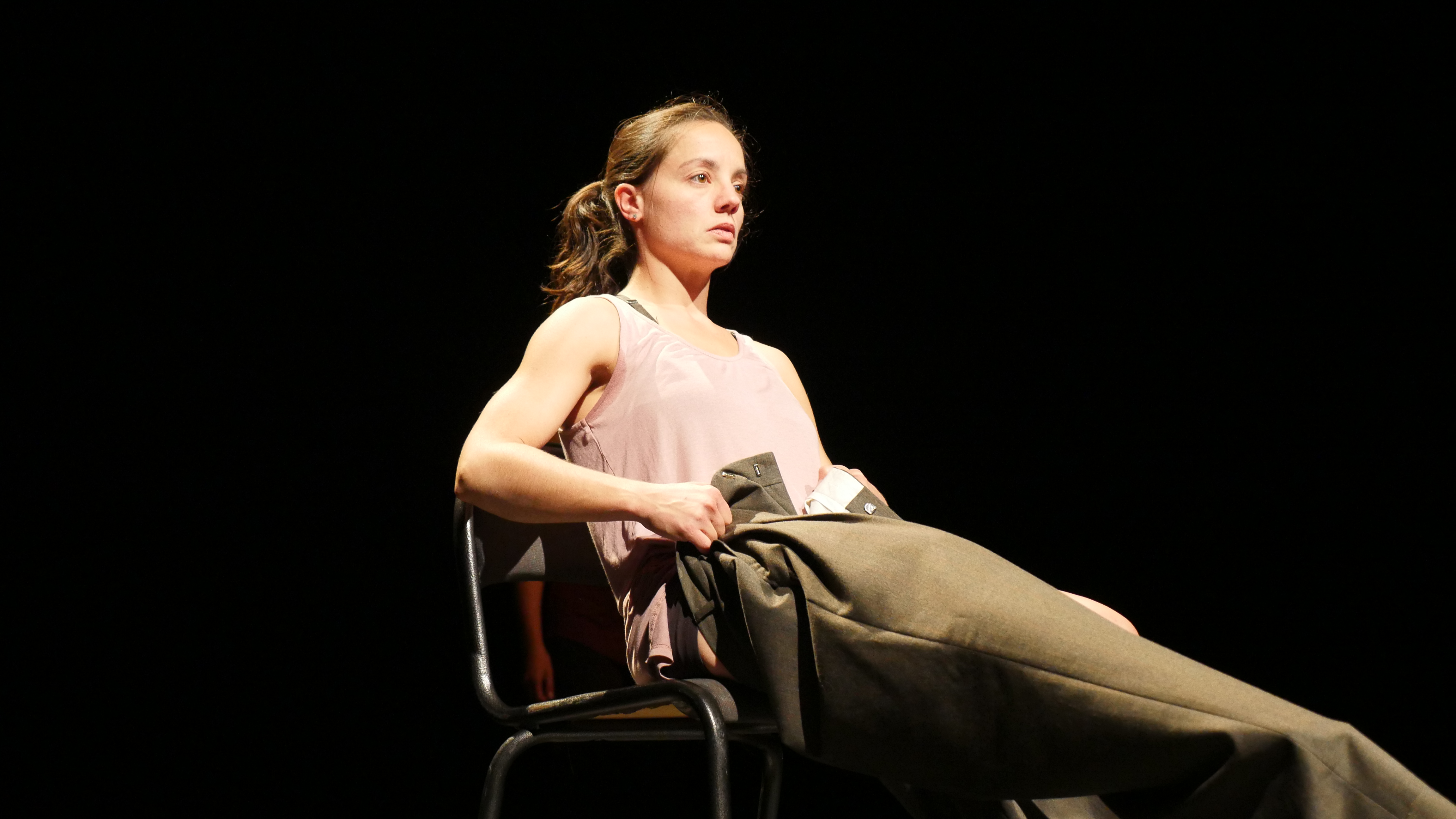 Emilie danse. Elle « gestue » dans son corps tout autant le scaphandre, engoncée dans un costume gris, que le papillon qui sort de la chrysalide, quitte le costume dans la scène, et retrouve la liberté de mouvement, de pensée en fait. Elle est la « geste » du récit de Christiane Singer ou d’Annie Ernaux en montrant combien le corps est tout autant capable de s’effondrer sur la scène que de renaître vigoureux et endiablé…