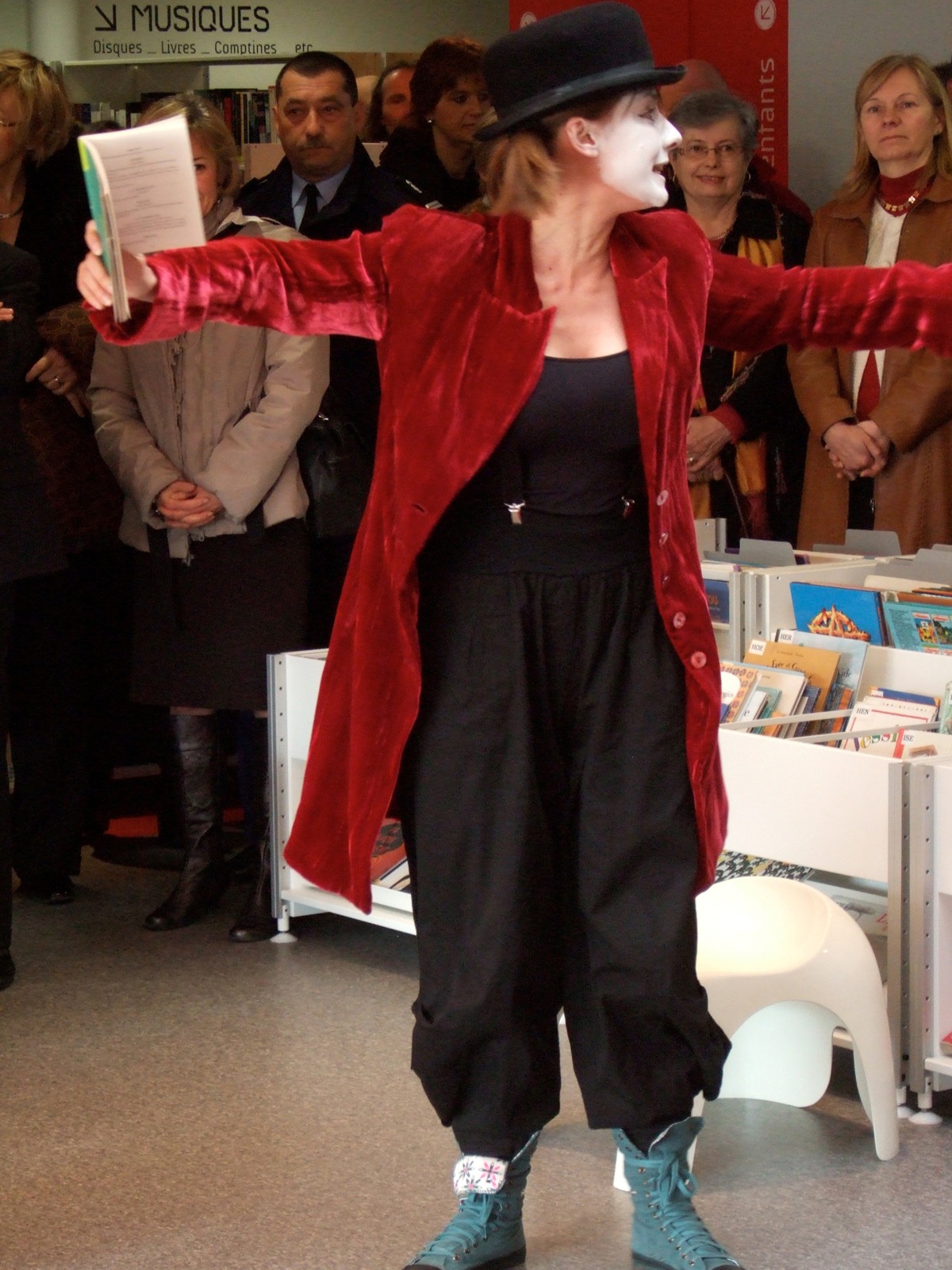 Ce sont donc un clown monté sur ressorts, un réparateur en bleu de travail, bonnet vissé sur la tête, un pianiste chic et une chanteuse lyrique, qui se sont chargés des félicitations, terminant leur prestation sur un « grand merci » à l’unisson. (…) »